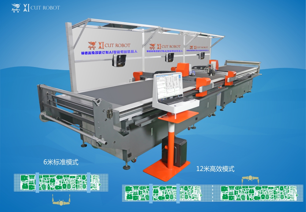 Cutting cloth type: high-grade suit, shirt, underwear, bra, etc., using ultra-long cutting table top, cutting the folded fabric, and covering the film with two layers at a time.