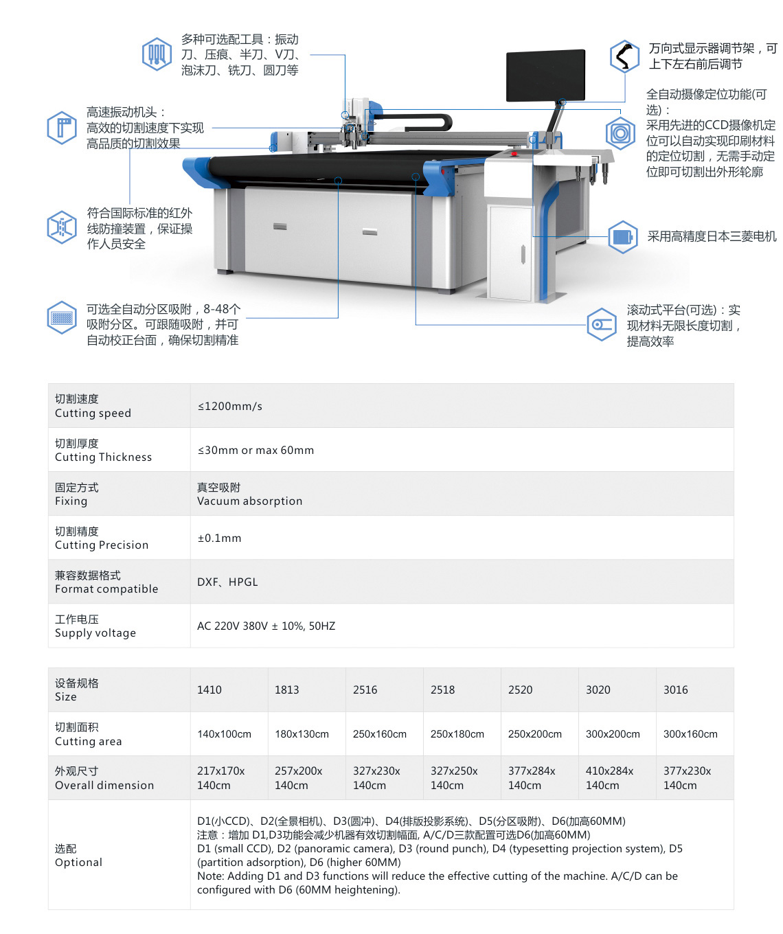 The configuration of vibration knife, drag knife strokes, tools and optional half knife, cutter, slotted knife, knife, cutter, indentation knife and other tools, can achieve the office of line drawing, cutting, cutting, dotted half cut off all the cutting and milling cutter cutting, various materials, V-CUT slot milling, pressing wheel, indentation size the utility function and so on scratch hard materials.