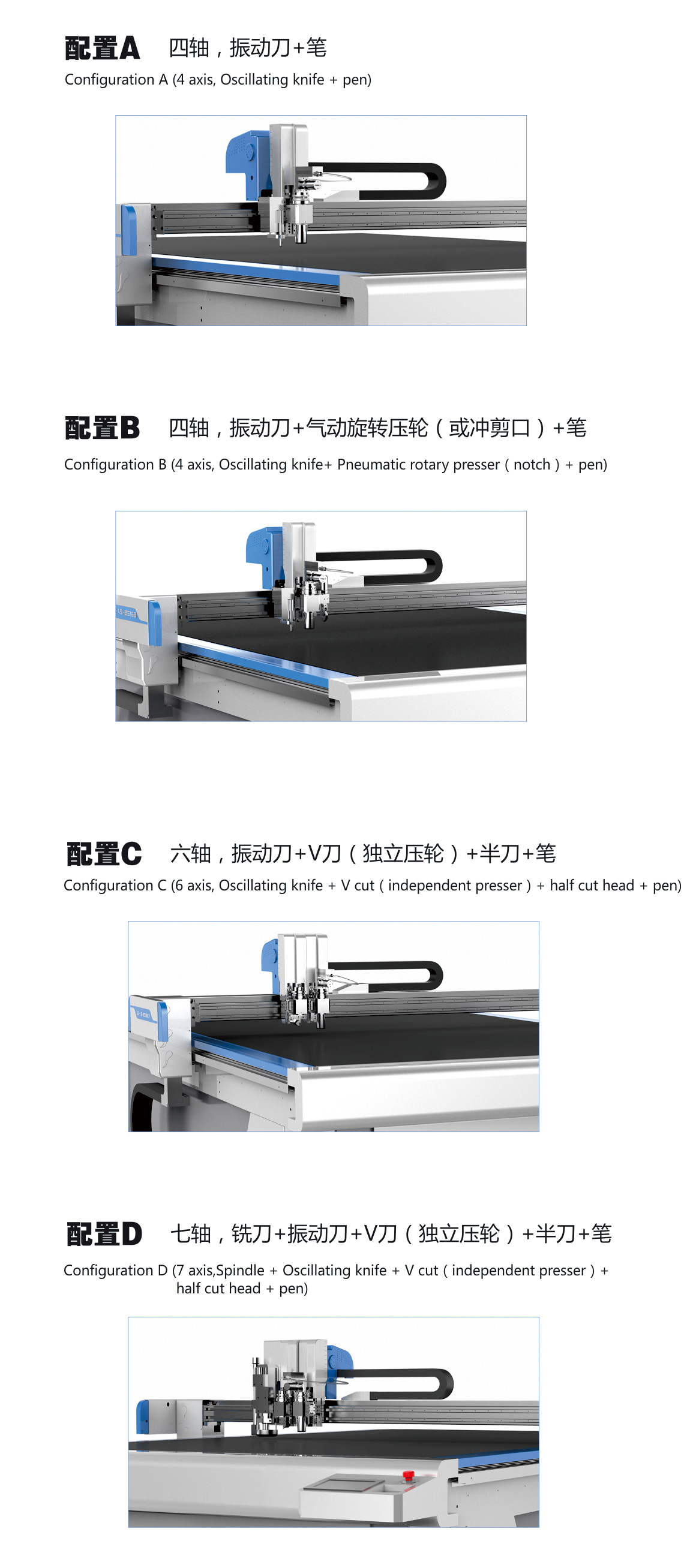 It adopts advanced and mature rolling table design, the platform width can be customized size, the theoretical cutting length is unlimited, the use of vacuum suction design, super strong suction (small sample adsorption is no longer difficult);Automatic camera positioning function: automatically realize the positioning and cutting of printing materials. The contour can be cut without manual positioning.